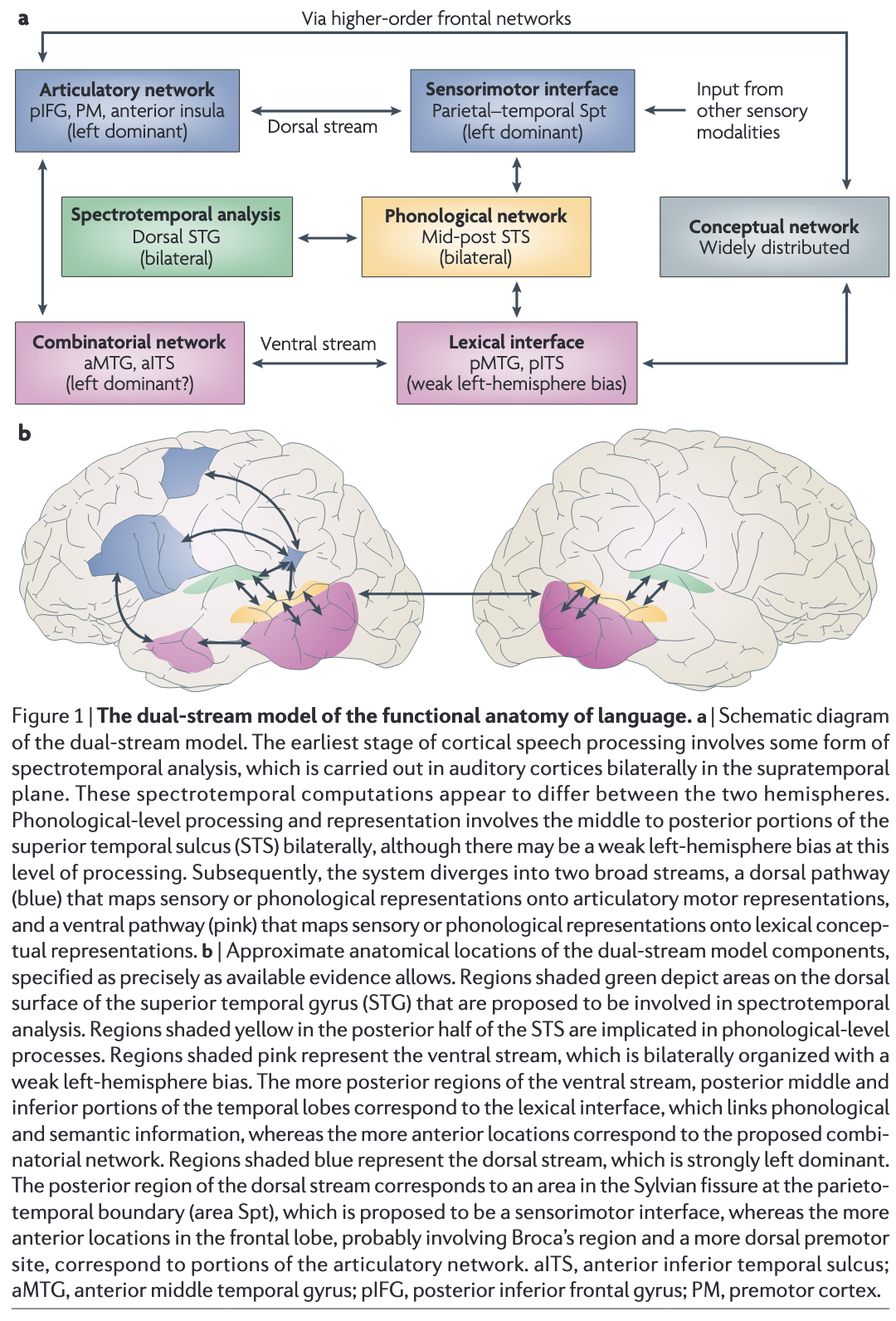 Hickok, G., & Poeppel, D. (2007). The cortical organization of speech processing. Nature Reviews Neuroscience, 8(5), 393–402. https://doi.org/10.1038/nrn2113